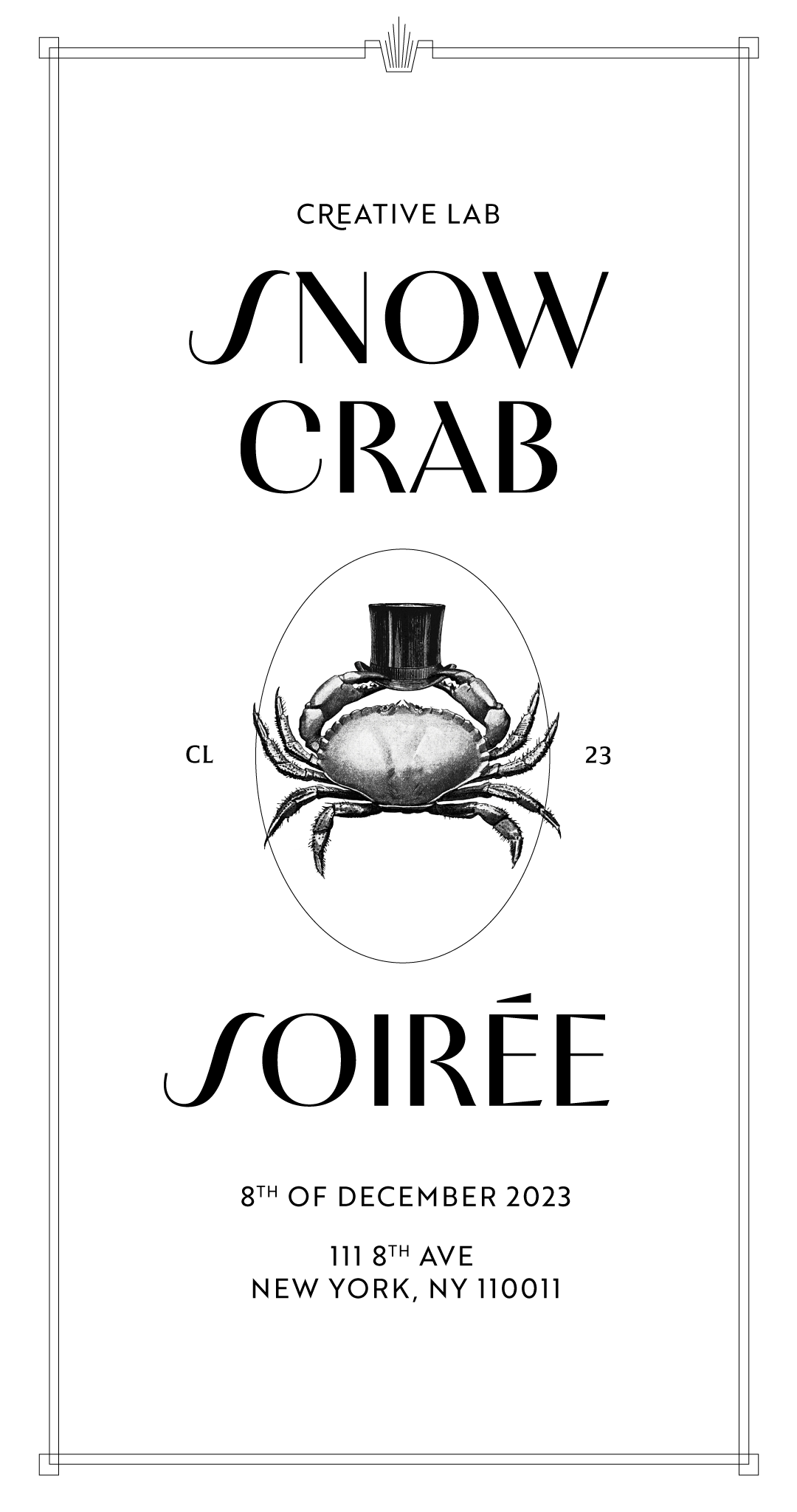 Designed printed collateral for CL’s NY Team 2023 holiday party, inspired by the elegance of 1920s–1930s black-and-white formal soirées.